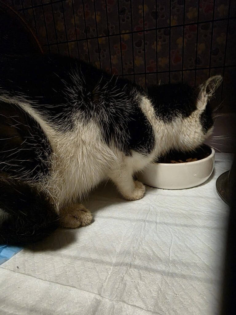 Augenscheinlich fit aber die Nase ist zu, die Atmung schwer, das Fell voller Haarlinge, ist sauber dünn und die Flöhe freuen sich über ein warmes Fell.